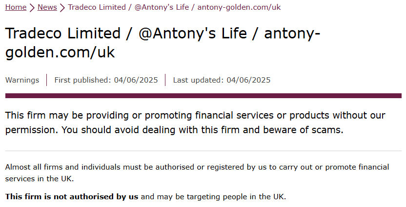 - تحذير FCA البريطانية ضد T4Trade (الشركة الأم): هيئة FCA البريطانية صرّحت علناً بأن T4Trade/Tradeco Limited غير مرخصة وغير مسجلة لديها، ونصحت المستثمرين بتجنب التعامل مع هذه الشركة تماماً.